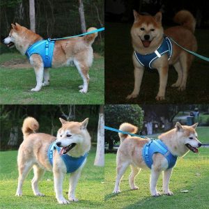 Az állítható fényvisszaverő öv és póráz puha, kényelmes és légáteresztő hálós szövetkialakítással rendelkezik, amely fokozza kedvence viselési élményét.