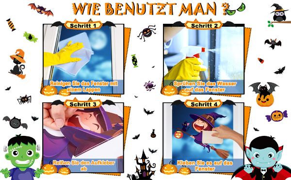- Méret: Halloween ablakmatricák, 10 darab, egyenként 21 x 29,5 cm-es matricából álló matrica