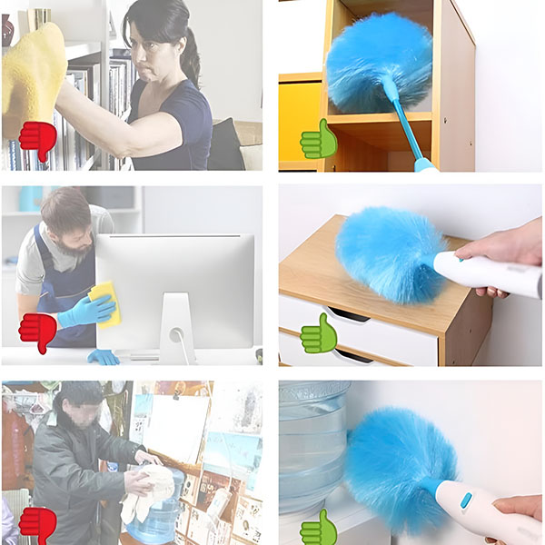Az ultra-finom mikroszálas fej azonnal megragadja és csapdába ejti a port, szennyeződéseket és allergéneket, így az 5× hatékonyabb tisztítást biztosít, mint a hagyományos portörlők. Nincs többé szálló por—csak makulátlan felületek másodpercek alatt!