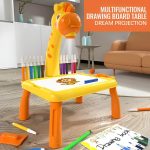 Színes, zsiráf témájú vetítő, amely figyelemfelkeltő és szórakoztató a gyerekek számára, miközben fejleszti a motoros és kognitív képességeiket.