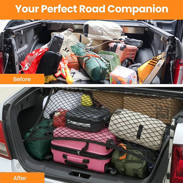 🚗 Biztonságosan a helyén tartja a tárgyakat bármely autó csomagtartójában