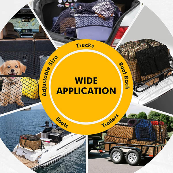 Ideális napi bevásárláshoz, családi kirándulásokhoz, kisállat-kiegészítőkhöz, szerszámokhoz, kempingfelszereléshez, sporteszközökhöz, strandjátékokhoz, vagy akár otthoni rendszerezéshez is. Egy háló – végtelen felhasználási lehetőség. Alkalmas autókhoz, SUV-khoz, furgonokhoz, utánfutókhoz, tetőcsomagtartókhoz és még hajókhoz is.