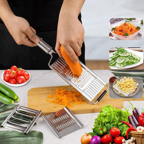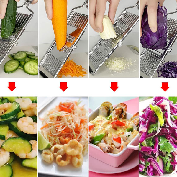 🧑🍳 Multifunkcionális kialakítás: Szeletelés, reszelés és aprítás egy eszközzel—tökéletes salátákhoz, sült krumplihoz és gyors ételekhez.