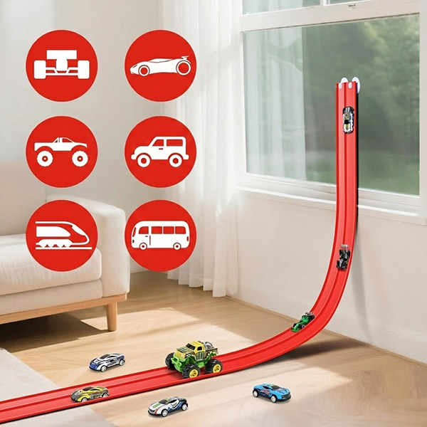 A gyerekek mindennapi tárgyak segítségével formálhatják a pályát, ugrásokat, alagutakat és hurkokat hozva létre, ami a fantáziát és a problémamegoldó készséget ösztönzi az ismétlődő játék helyett. Órákon át leköti őket képernyők nélkül.